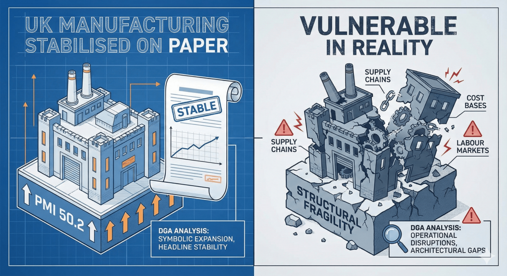 A DGA analysis on the PMI uptick, industrial strategy pressures, and why productivity requires structural architecture, not optimism. UK manufacturing has recorded its first increase in activity since September 2024. The headline Purchasing Managers’ Index (PMI) moved to 50.2 in November, a symbolic crossing back into expansion territory. At first glance, this appears to support…